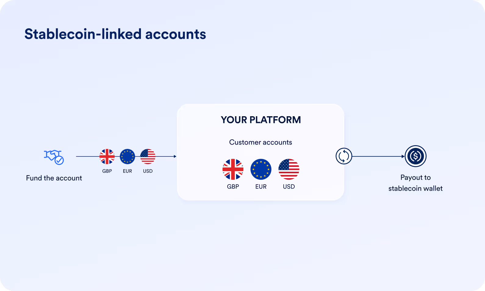 - Account creation: Once verified, your customer creates stablecoin-linked accounts in your platform or