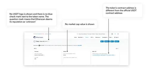 Every stablecoin has a contract, which can be verified. To make a fake coin appear real, scammers create fake contracts.